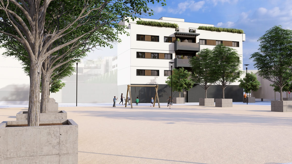 Se integra en una de las zonas con mayor proyección de Lucena, aprovechando su cercanía a equipamientos, áreas verdes y ejes de conexión que facilitan la vida cotidiana. El edificio se plantea como una ampliación coherente de la primera fase, reforzando la imagen contemporánea del conjunto y contribuyendo a la renovación del entorno urbano.