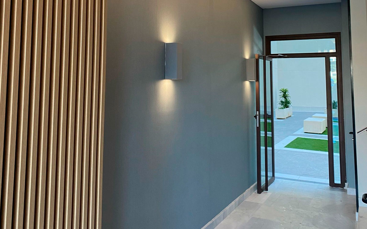 La decisión de adoptar una fachada inclinada se integra con sensibilidad en el contexto del PAU O3 mediante un Estudio de Detalle específico que ajustó parámetros de alineación, proporción, ritmo de huecos y relación con el viario, garantizando la coherencia del edificio con la ordenación del planeamiento y los criterios de calidad urbana del conjunto.