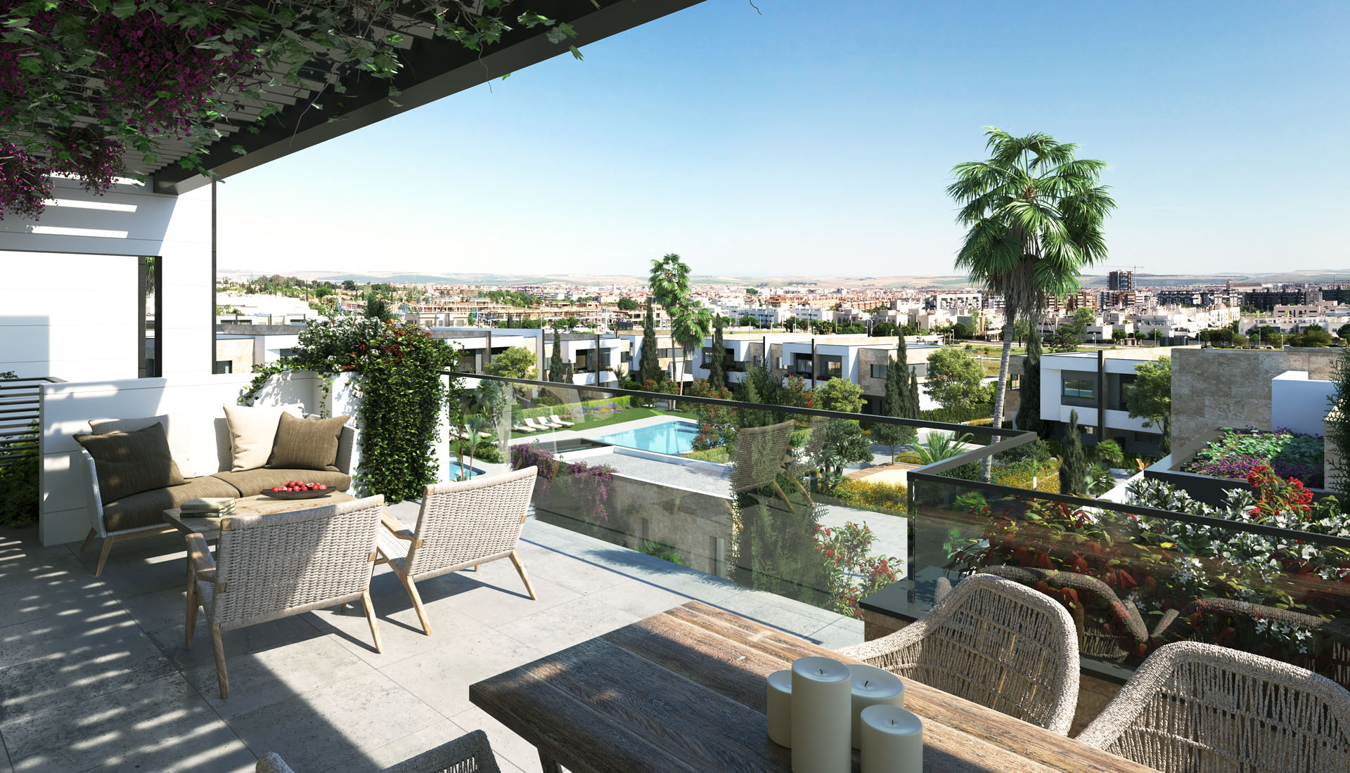 Urbanización Las Dahlias es un proyecto residencial de arquitectura contemporánea ubicado en una de las zonas más privilegiadas de Córdoba, bajo el Parador de la Arruzafa, en el sector Ciudad Jardín de Poniente 1. El conjunto se compone de 42 viviendas —20 unifamiliares adosadas y 22 en bloque— diseñadas con una cuidada selección de materiales nobles de primera calidad, que aportan solidez, calidez y una estética atemporal.