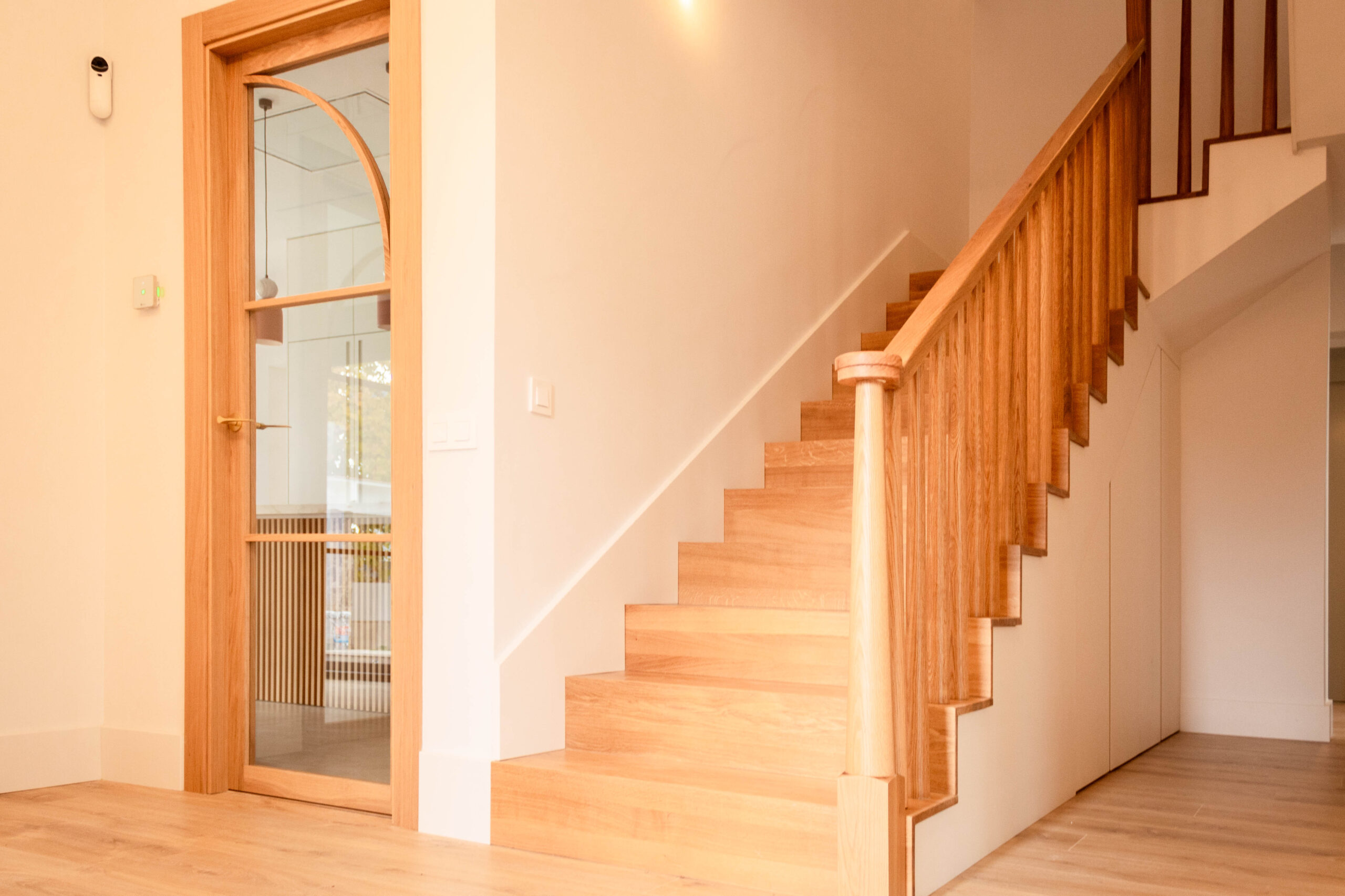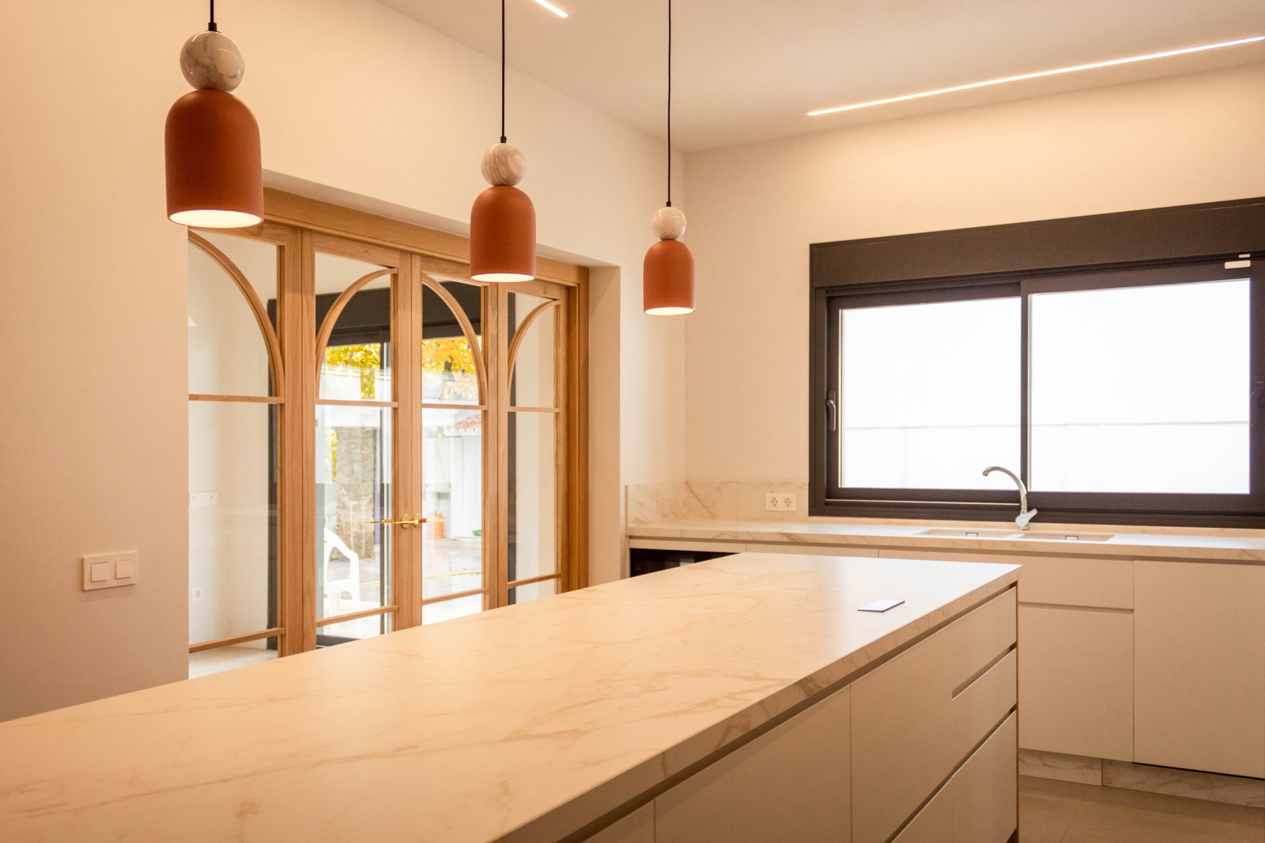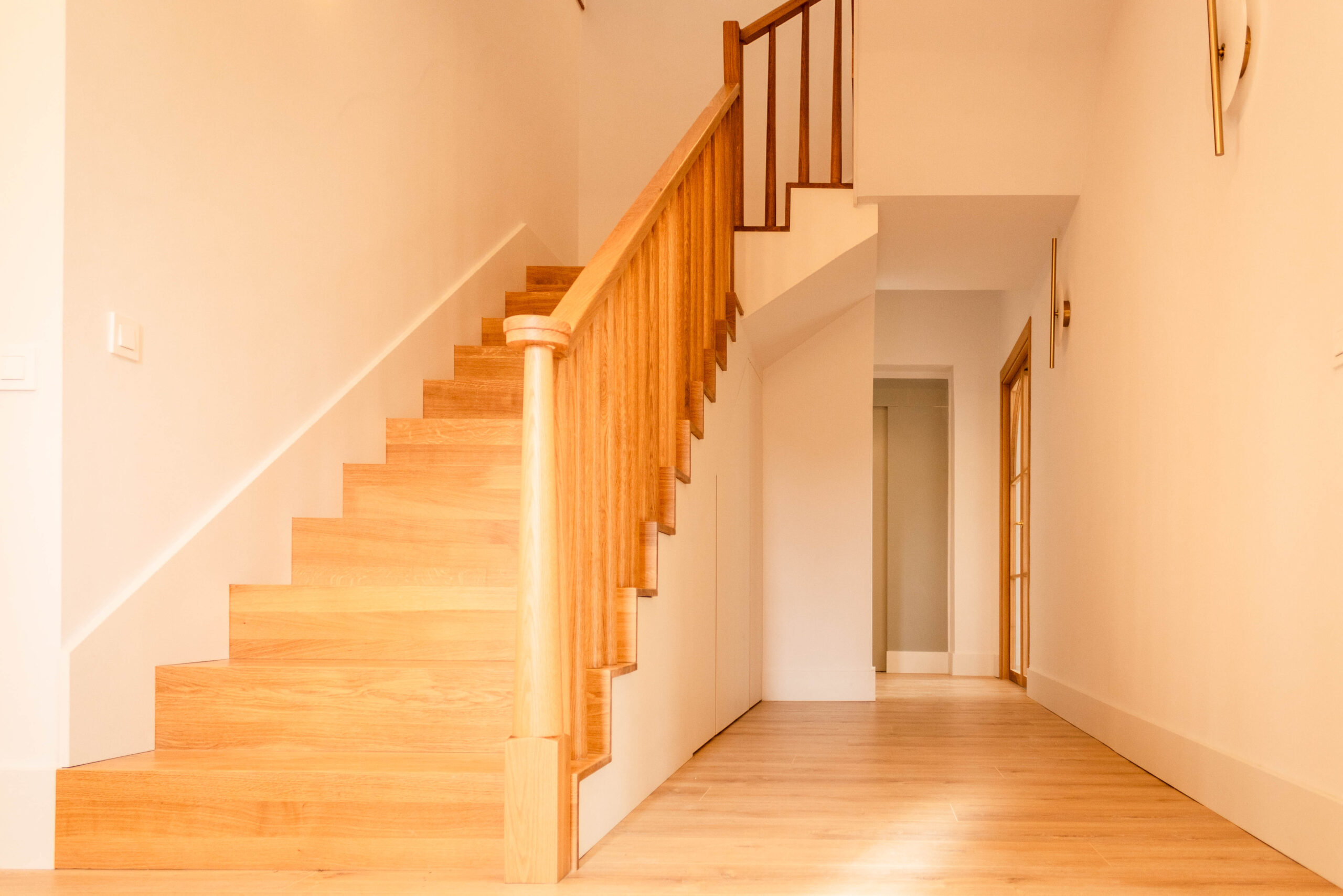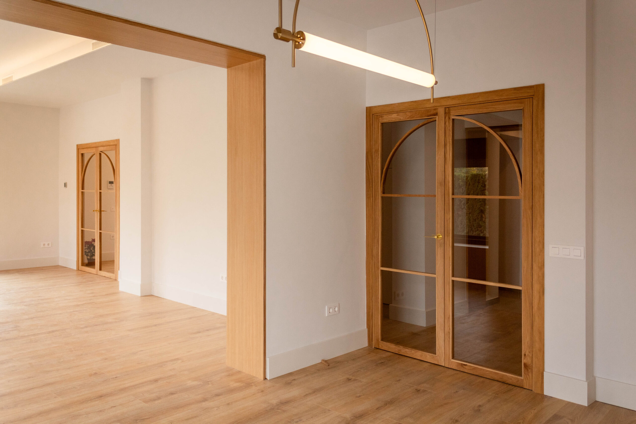 La intervención en esta vivienda unifamiliar en Avenida Arruzafa representa una transformación profunda que reinterpreta el carácter original de la casa para crear un hogar contemporáneo lleno de luz, calidez y calidad sensorial. Partiendo de una estructura tradicional, el proyecto ha sustituido los materiales más convencionales por acabados contemporáneos —como revestimientos en madera natural, pavimentos cálidos y carpinterías minimalistas— que aportan una sensación de modernidad sin renunciar al confort cotidiano. La luz se convierte en protagonista absoluta: grandes ventanales y conexiones visuales con el exterior permiten que la iluminación natural inunde los espacios de día, diluyendo los límites entre interior y exterior y generando ambientes diáfanos y envolventes. Cada espacio ha sido configurado para responder no solo a la función, sino también a la experiencia de habitar: desde estancias que parecen respirar hasta rincones íntimos bañados por luz rasante, creando un equilibrio entre modernidad y serenidad que redefine la forma de vivir la casa. Esta reforma e interiorismo no solo actualiza materiales y estética, sino que reescribe la narrativa espacial de la vivienda, articulando una arquitectura doméstica que es contemporánea, acogedora y perfectamente integrada en su entorno urbano
